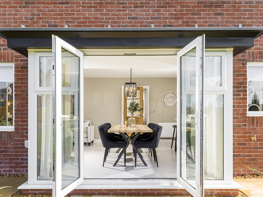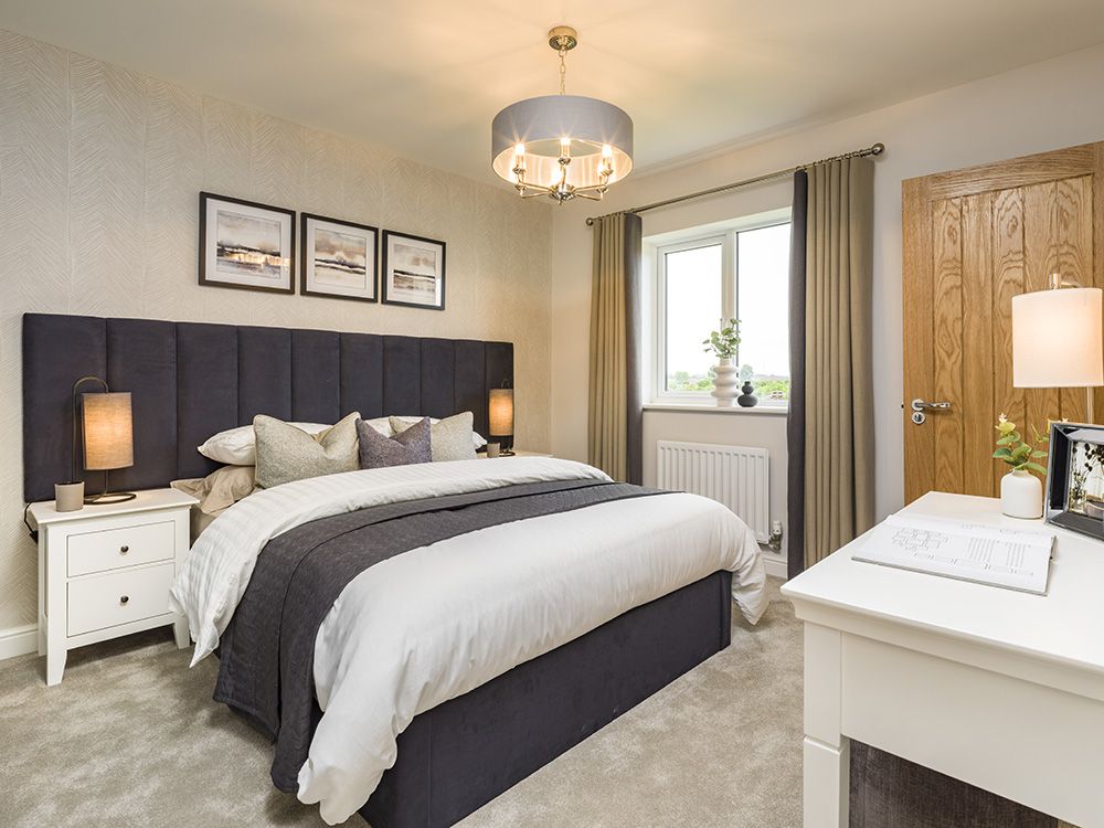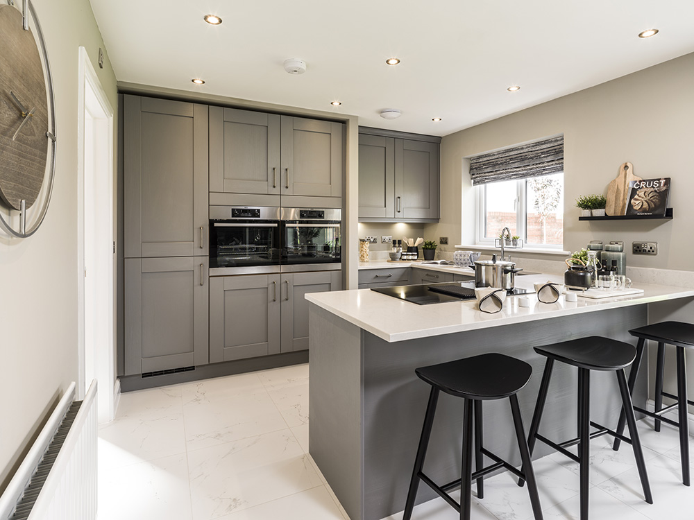 The feature room in the Hewson is the open plan kitchen/dining/family area, which has a peninsula kitchen island and bay window with French doors and full height glazing, as well as two windows in the wider area, flooding the room with light and further extending the living space, making this the perfect place to entertain.