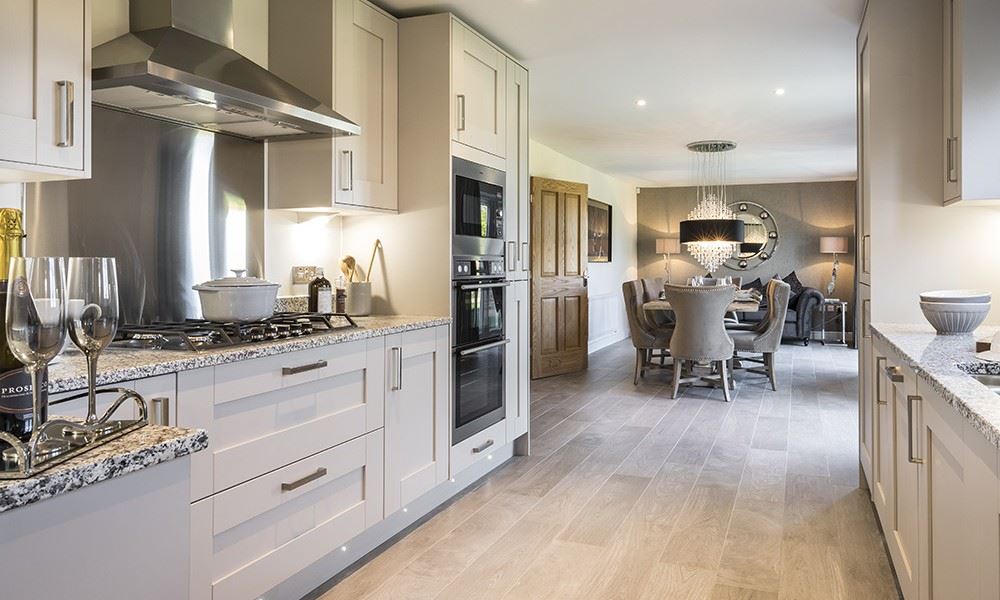 The Westminster has a large open-plan kitchen/dining/family room, creating a lovely family space with room for eating, entertaining and relaxing. From the family area, French doors open out onto a patio and turfed garden; a utility room provides useful extra work space. The entrance hall is spacious and airy, with a contemporary staircase. A downstairs cloakroom and an understairs cupboard offer convenient storage space. There is a large lounge and a separate study, which completes the generous downstairs accommodation. Upstairs, you’ll find five bedrooms, including two with en-suite bathrooms. The master suite is particularly impressive, offering a spacious shower. A modern family bathroom serves the remaining bedrooms, ensuring comfort and convenience for all.